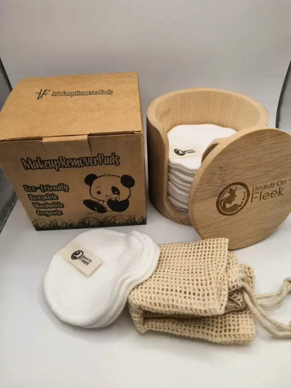 Packaging: Kraft paper box. 1x Bamboo Storage Box, 20x Hemp Cotton Rounds, + 1x Mesh Cotton Laundry Bag.